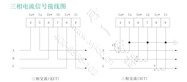 5.当输入标称电流超过AC 5A时,需另配电流互感器CT(二次电流5A)。